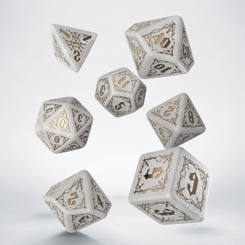 Ce set est composé de 7 dés polyédriques : D6, D8, D10, D12, D20, DOO et Modern D4.