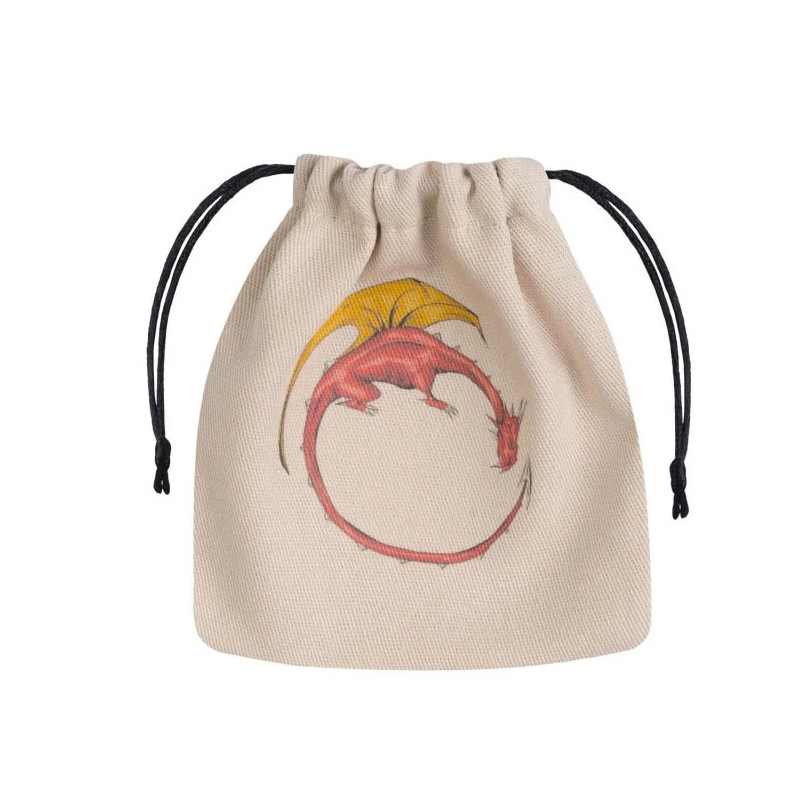 Sac à dés haute qualité en lin de 10x11cm environ, avec cordelette de fermeture noire.