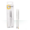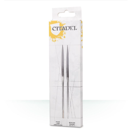 Ce jeu contient deux limes, une à gros-grain et une autre à grain fin. Chacune possède une face plate et une face arrondie, ainsi qu’une pointe fine, pour que vous puissiez poncer vos figurines et obtenir un fini irréprochable