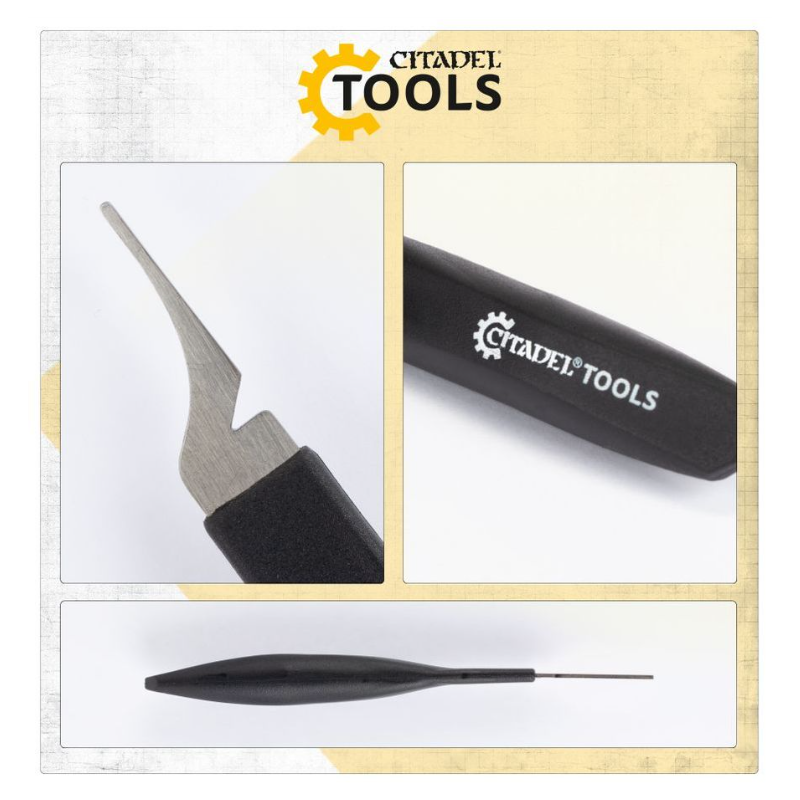 – L'encoche à l'arrière de la lame est conçue pour nettoyer les bords effilés de vos socles, pour qu'ils soient rapidement et facilement prêts à être peints