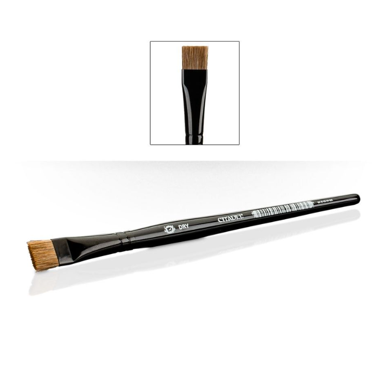 Ce gros pinceau (L Dry) est fait d'un mélange de fins poils de bœuf et de poils synthétiques pour obtenir un bon compromis entre raideur et longévité. La forme aplatie permet de traiter les reliefs avec constance, l'idéal pour le brossage à sec!