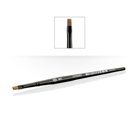 Ce petit pinceau (S Dry) est fait d'un mélange de fins poils de bœuf et de poils synthétiques pour obtenir un bon compromis entre raideur et longévité. La forme aplatie permet de traiter les reliefs avec constance, l'idéal pour le brossage à sec!