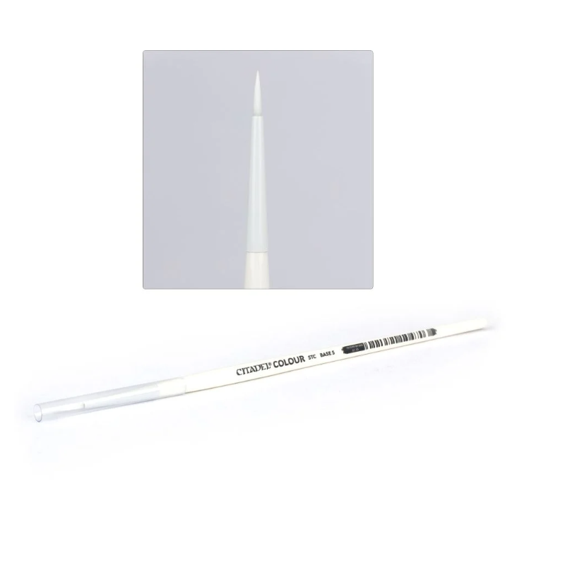 Suffisamment petit pour accéder aux recoins, le pinceau S Base est idéal pour appliquer la peinture Citadel Base dans les endroits entourés de parties dont vous avez déjà traité les couleurs. Comme il s'agit d'un pinceau fin, il convient très bien aussi pour les rehauts sur les arêtes de vos figurines, et pour faire des finitions telles que les petites inscriptions et autres lentilles de verre.