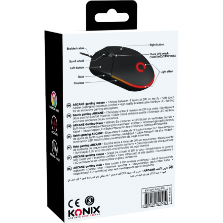 - Polyvalence et précision : Choisissez entre 4 niveaux de DPI réglables (1200/1600/2400/3600) pour adapter la sensibilité selon vos besoins de jeu.