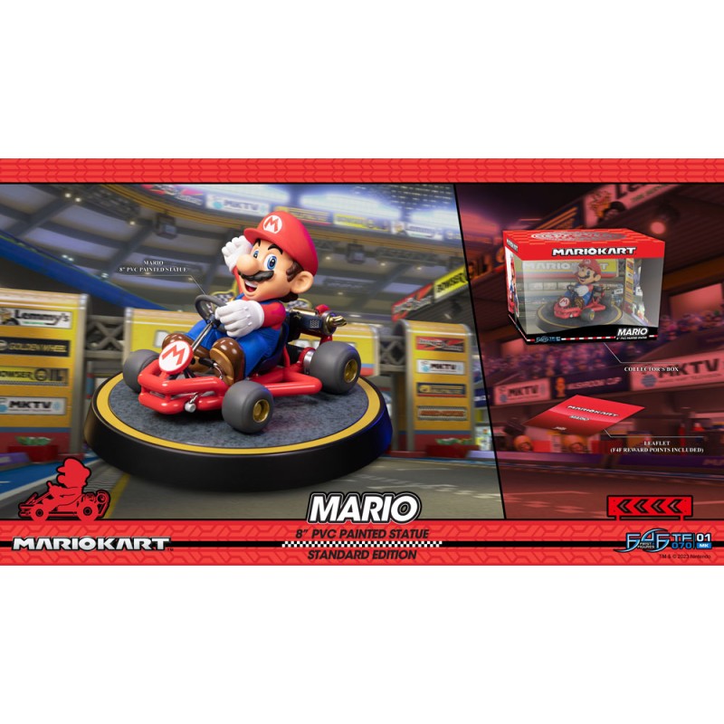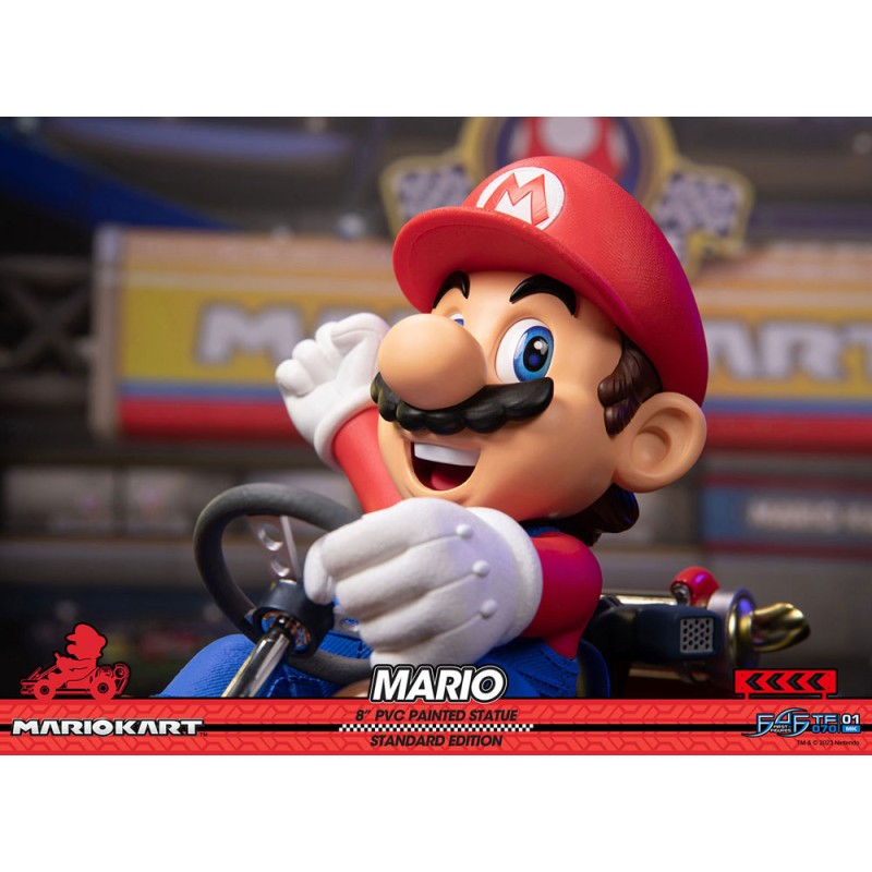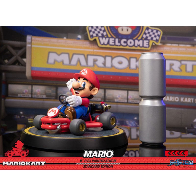 Statuette en PVC sous licence officielle Mario Kart, taille env. 19 cm sur socle décor, en emballage bôite-fenêtre.