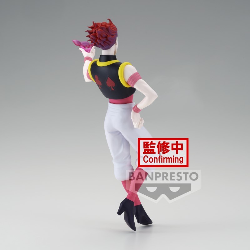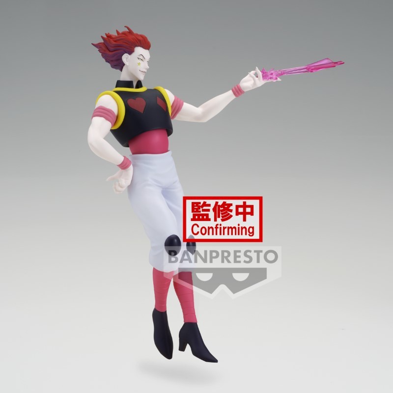 Figurine Hunter X Hunter, HXH, d'Hisoka. En pose dynamique, sur socle dans la gamme Vibration Star. Mesure environ 18cm.