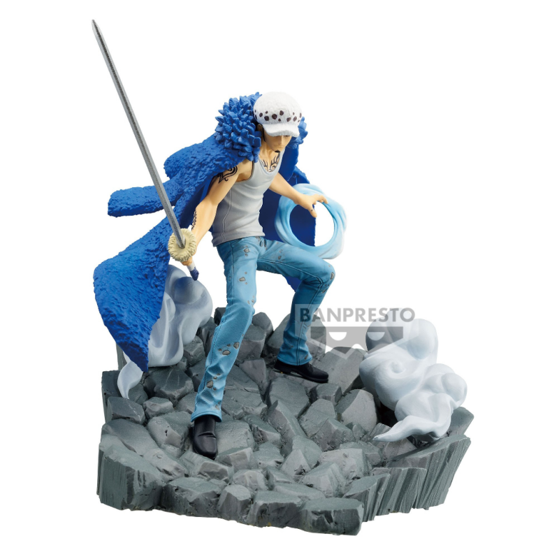 Figurine de Trafalgar Law dans One Piece. S'assemble avec la figurine de Teach de la même gamme, Senkouzekkei. Mesure environ 8cm.