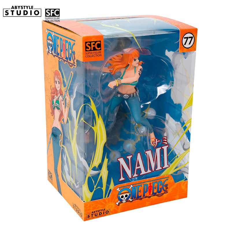 Cette figurine de Nami par ABYstyle Studio en mode combat capture l'instant où elle se prépare à utiliser son Climat-Tact pour défendre l'équipage du chapeau de paille. Les cheveux flottants et la posture dynamique sont d'autant plus marqués que le socle représente des éclats de lumière et de vent, illustrant la puissance de son arme. Un incontournable pour les fans de One Piece, mettant en avant la force et la confiance de Nami en pleine bataille.