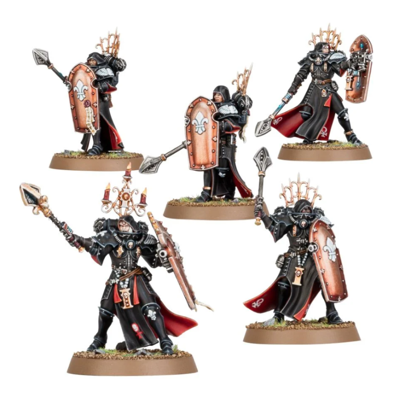 Ce kit plastique en 69 composants permet d'assembler cinq Célestes Sacro-saintes, dont l'une peut être Céleste supérieure, et il est fourni avec 5x socles ronds Citadel de 32mm. Le kit propose en option des têtes casquées ou encapuchonnées, et comme armes des hallebardes consacrées ou des masses sanctifiées.