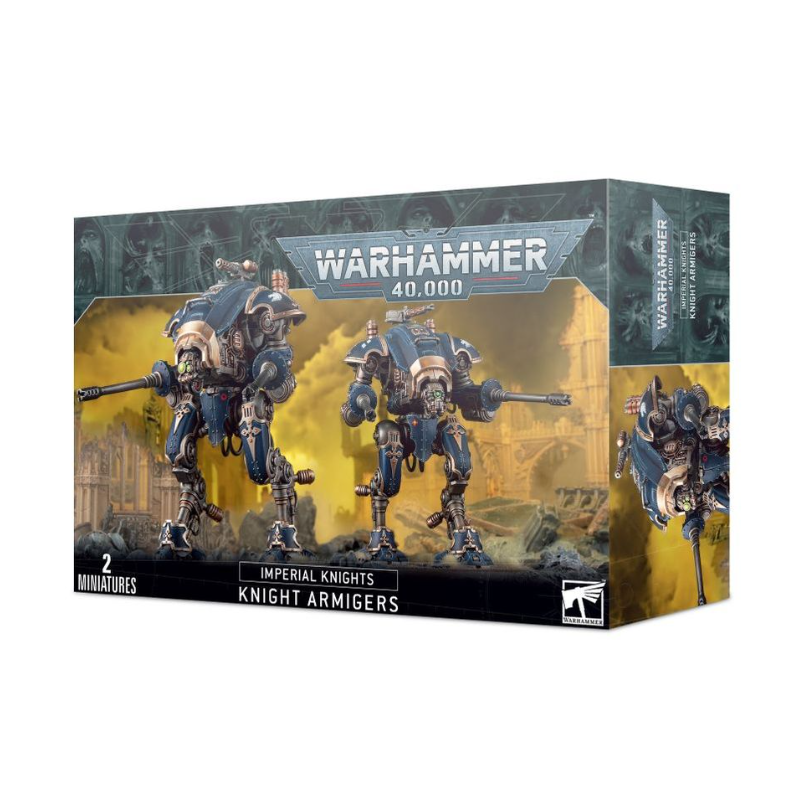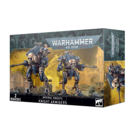 Ce kit plastique vous permet d'assembler deux Chevaliers de classe Armigère – soit des Armigères Hastaires, soit des Armigères Helvériens. Les Armigères Helvériens sont des choix de Seigneur des Batailles équipés pour le combat à distance qui peuvent fournir un appui-feu décisif à votre armée de Chevaliers Impériaux – ou être pris comme escadron de Sans-fiefs errants pour d’autres armées de l’Imperium. Dotés d’une paire d’autocanons à longue portée et, au choix, d’une mitrailleuse ou d’un fuseur de carapace, chaque Armigère Helvérien peut voir sa pose et sa silhouette personnalisées grâce à ses articulations, ses plaques d'armure et six plaques faciales uniques, et les amples sections de carapace autorisent les projets de peinture les plus ambitieux. Ce kit peut alternativement être assemblé en deux Dogues Exécuteurs ou Dogues Chasseurs pour les armées de Chevaliers du Chaos.