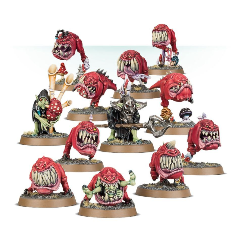 Squigs! Ces méchantes créatures se résument à des gueules sur pattes à l'attitude déplorable, qu'on redoute à travers les Royaumes Mortels pour leur appétit vorace et que les Gloomspite Gitz emploient souvent au front.