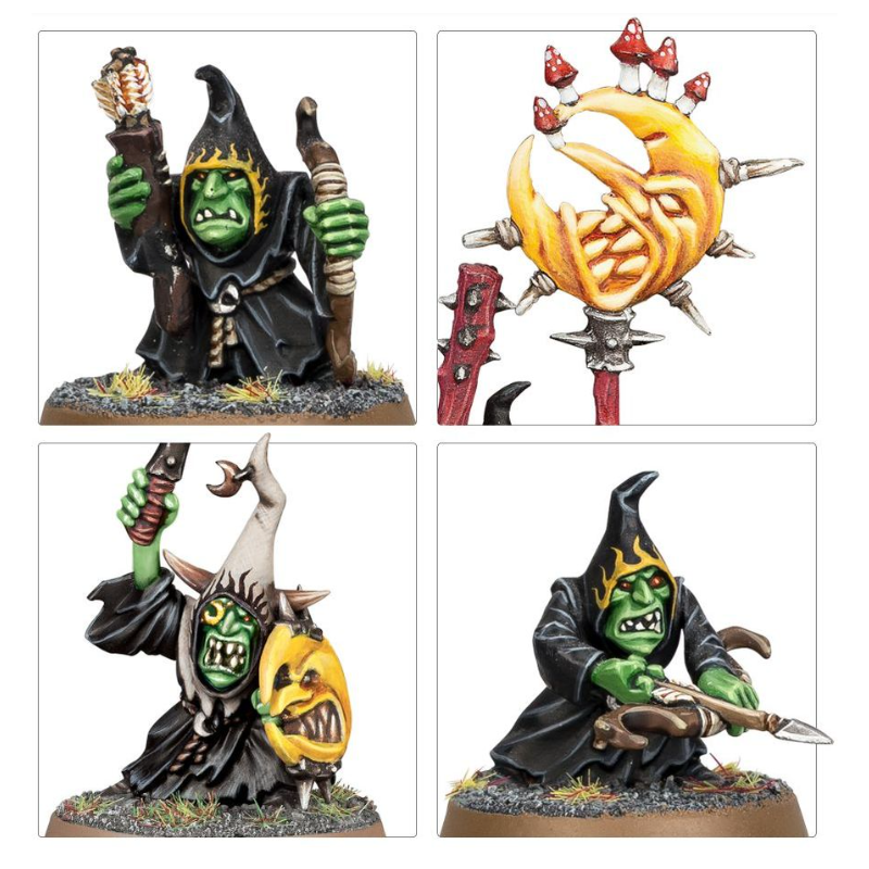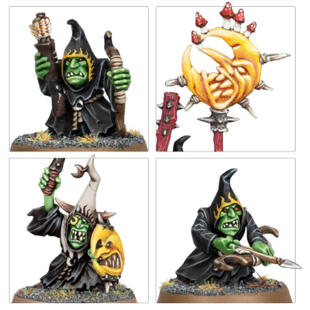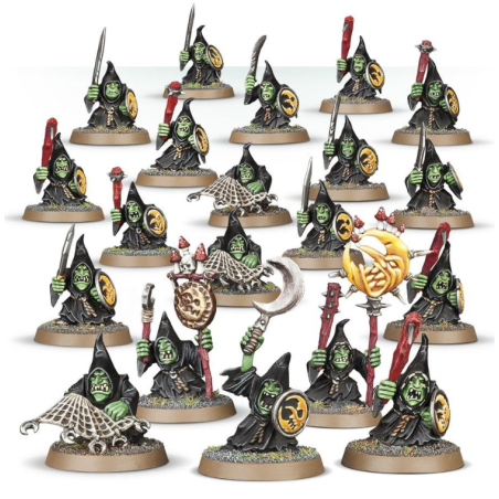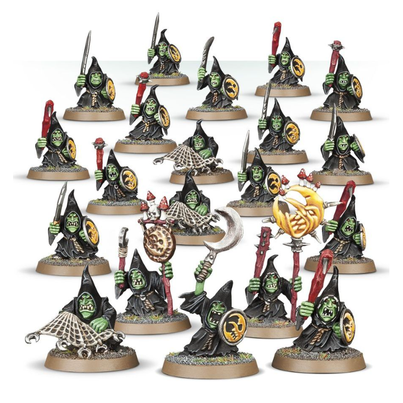 Vous trouverez dans ce kit suffisamment de kitrou', de lances pointu’, et de boucliers d’la lune pour monter une unité de Stabbas, et alternativement vous avez assez d'arcs Moonclan et de kitranch' pour monter une unité de Shootas. Vous avez aussi de quoi assembler des porte-étendards, un sonneur de gong, 2 rétiaires et un kitrou' spécial pour désigner le Moonclan Boss de l'unité.