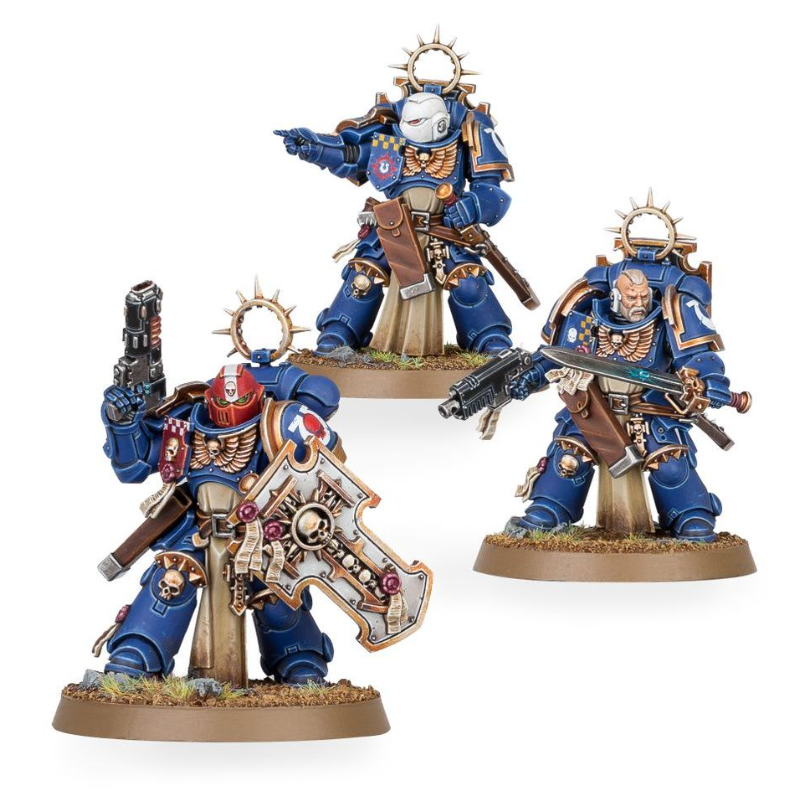 Menez la charge avec ces maîtres du combat rapproché. Chacun est armé d'une épée énergétique de maître et d'un bouclier Storm. Une option permet de promouvoir un membre de l'escouade au grade de sergent. Le kit propose aussi tout un choix de têtes, écus, pistolets et variantes d'étuis ainsi qu'un pistolet à plasma et un pistolet néo-volkite en option pour le sergent. Ces vétérans blanchis sous le harnois sont nantis des meilleures armures, qui ont fière allure aux couleurs de n'importe quel Chapitre.