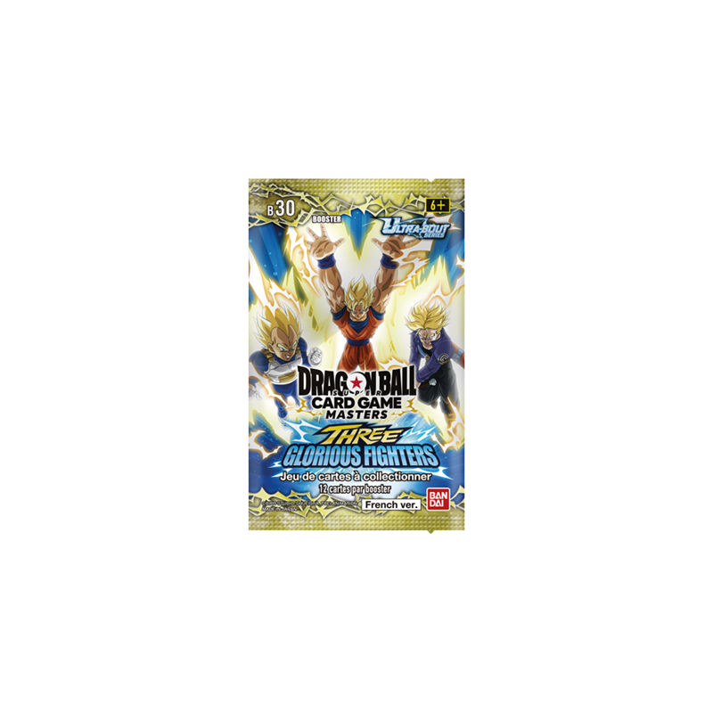 Booster Dragon Ball Super Card Game - B30 Three Glorious Fighter : Fearsome Rival Ultra Bout 03 de 12 cartes aléatoires en version française.