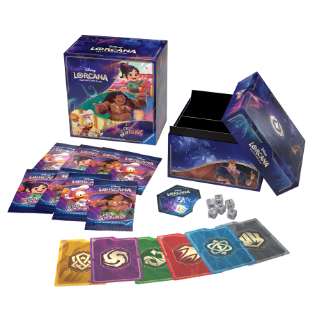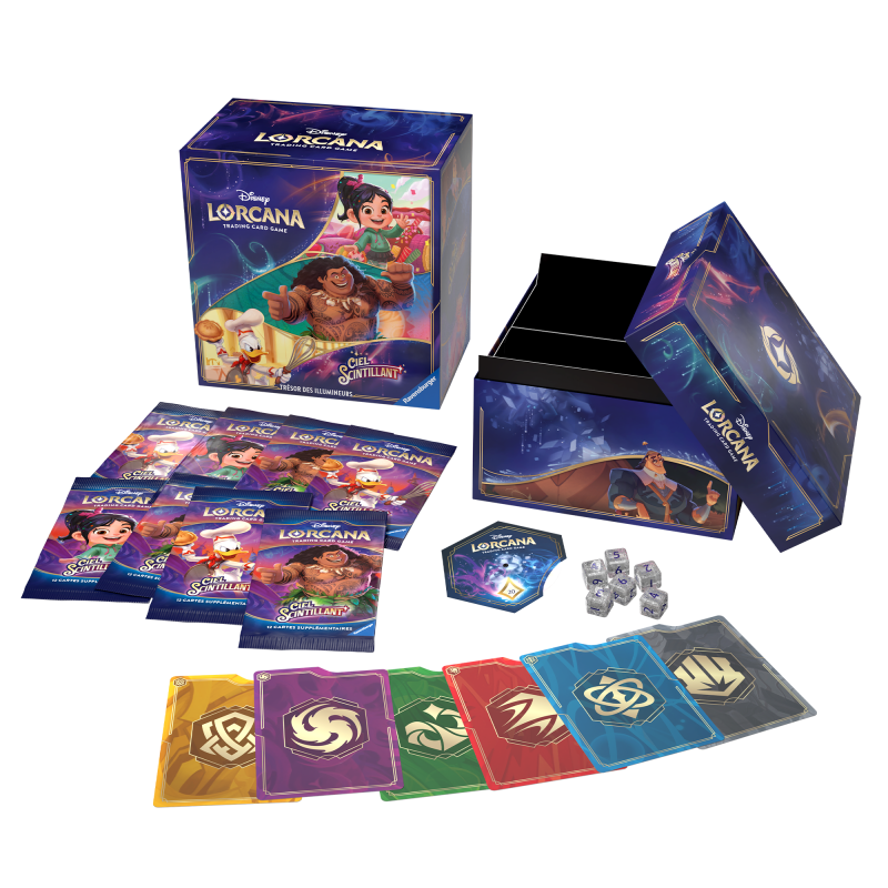 Le coffret ultime pour les collectionneurs et les joueurs, le Trésor des Illumineurs comprend une boîte de rangement illustrée avec 6 séparateurs de cartes pour garder vos cartes Disney Lorcana TCG en toute sécurité et organisé par encre.