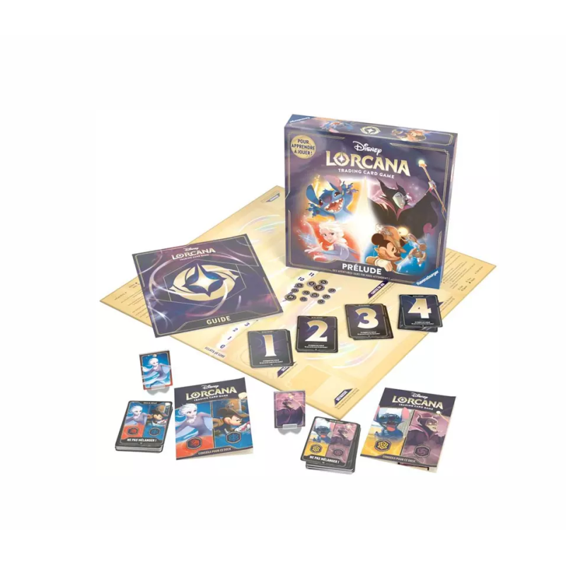 - comprend tout ce qui est nécessaire pour commencer à jouer immédiatement, et vous aide à apprendre à jouer en construisant par étapes deux decks complets de 60 cartes du jeu Disney Lorcana TCG. Du matériel supplémentaire tels que des jetons Dommage, des pions de personnages et un plateau de jeu est également inclus.
