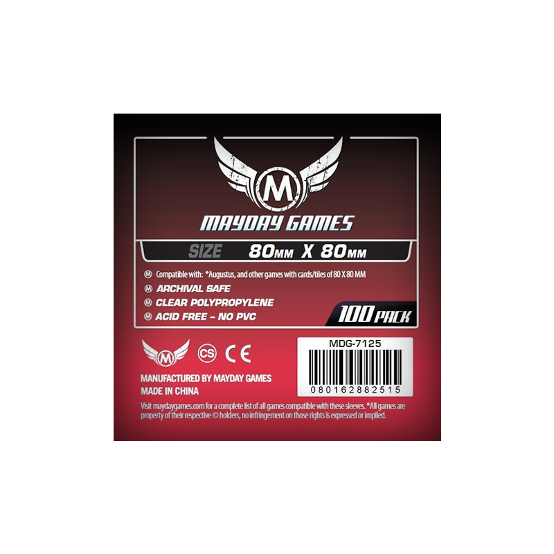 Paquets de 100 sleeves transparent format 80x80 mm. Idéal pour protéger vos jeux de société.