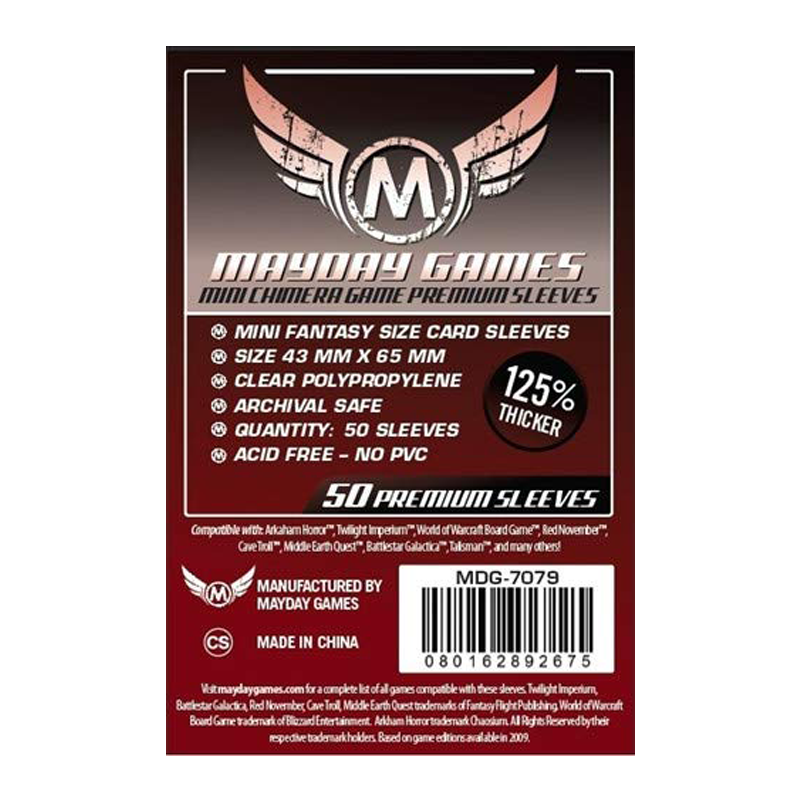 Paquets de 50 sleeves transparent format 43x65 mm. Idéal pour protéger vos jeux de société.