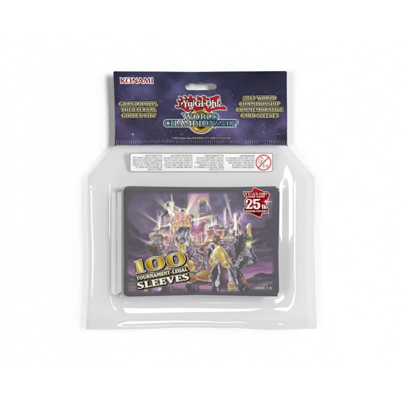 Chaque pack contient 100 pochettes de cartes spécialement conçues pour répondre aux normes de réglementation des tournois pour le Yu-Gi-Oh! TCG. Assurez-vous de les jumeler avec le Tapis de jeu commémoratif du Championnat du monde 2013 Yu-Gi-Oh! Grandopolis, la ville dorée éternelle –!