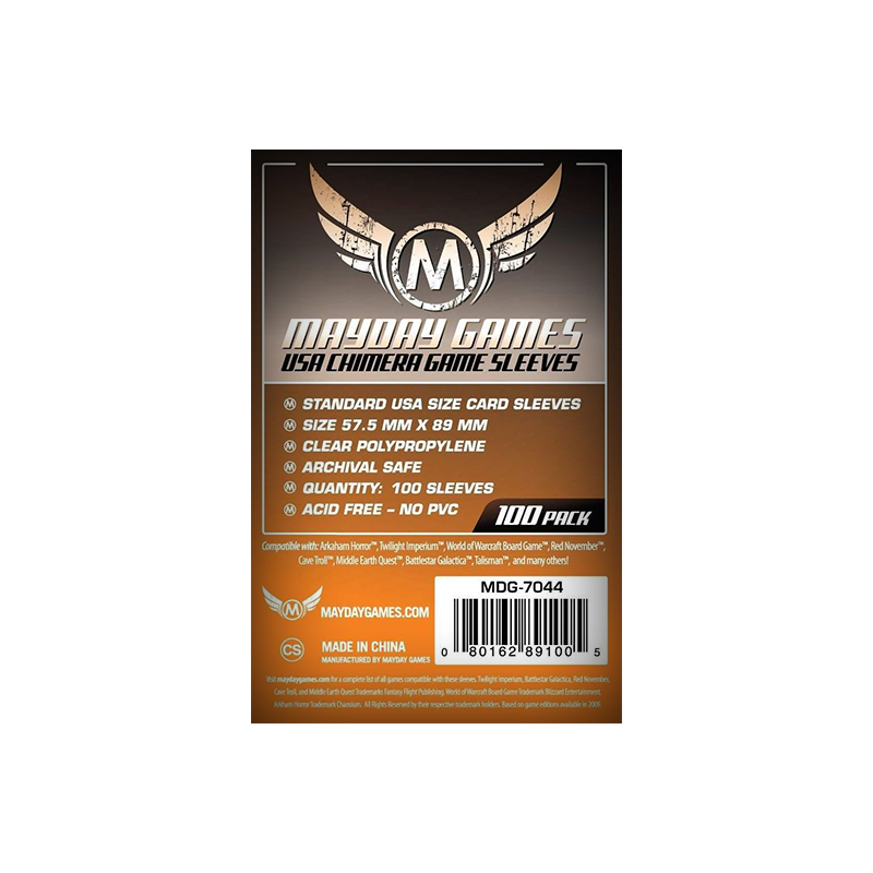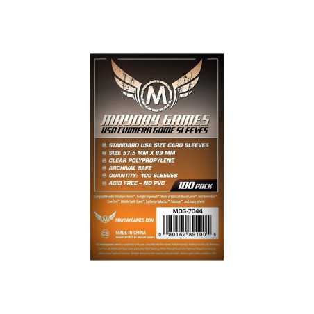 Paquets de 100 sleeves transparent format 57.5x89 mm. Idéal pour protéger vos jeux de société.