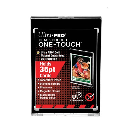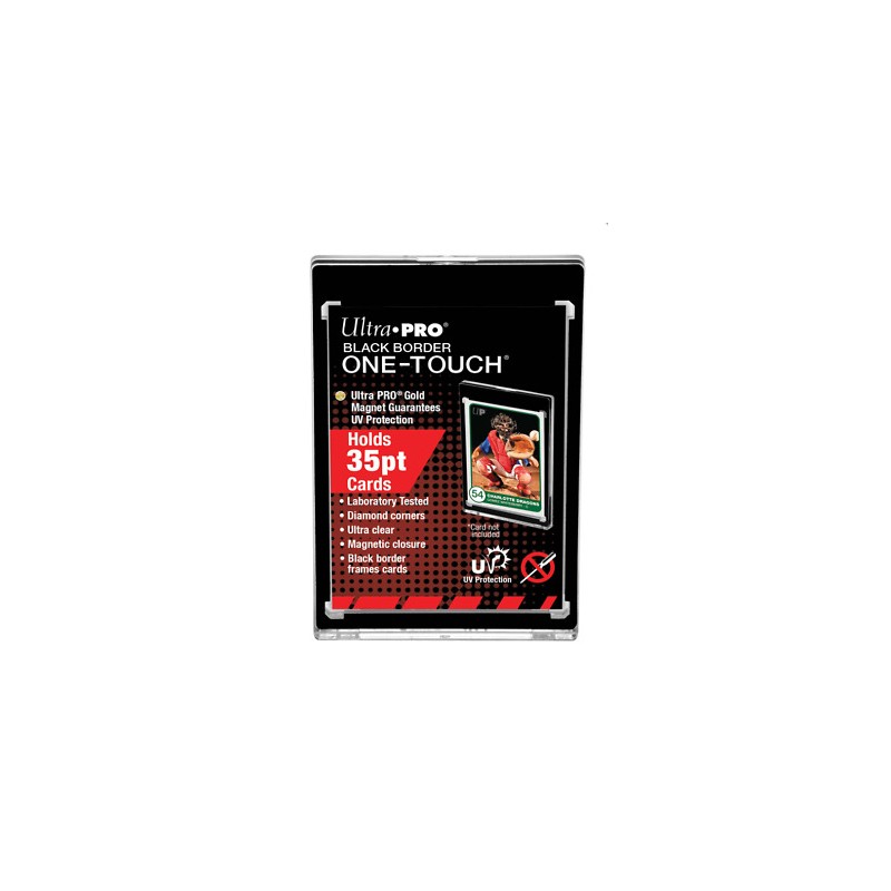 Protection avec fermeture aimanté, en plastique dur pouvant contenir des cartes de collection jusqu'à 35 points d'épaisseur.
