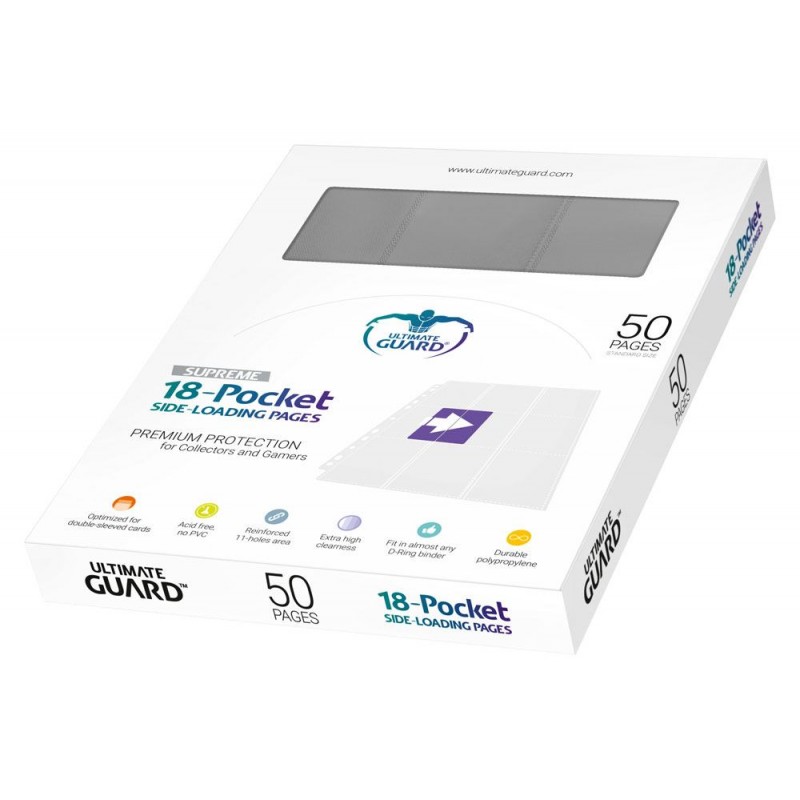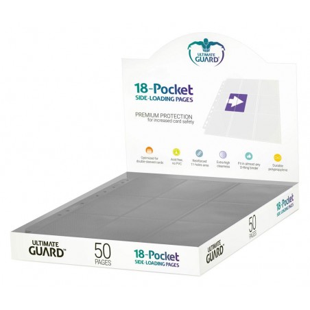 Pages haute qualité double-face (9 poches sur chaque face) compatibles avec la plupart des classeurs D-Ring grâce à la bande 11 trous à double renfort. Chaque pack contient 50 pages pour ranger et transporter jusqu'à 900 cartes à collectionner en double-pochette (double-sleeved).