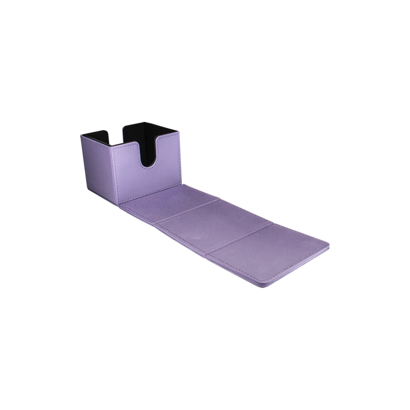 - Le couvercle se déplie pour révéler deux encoches pour le pouce pour un accès facile à votre deck.