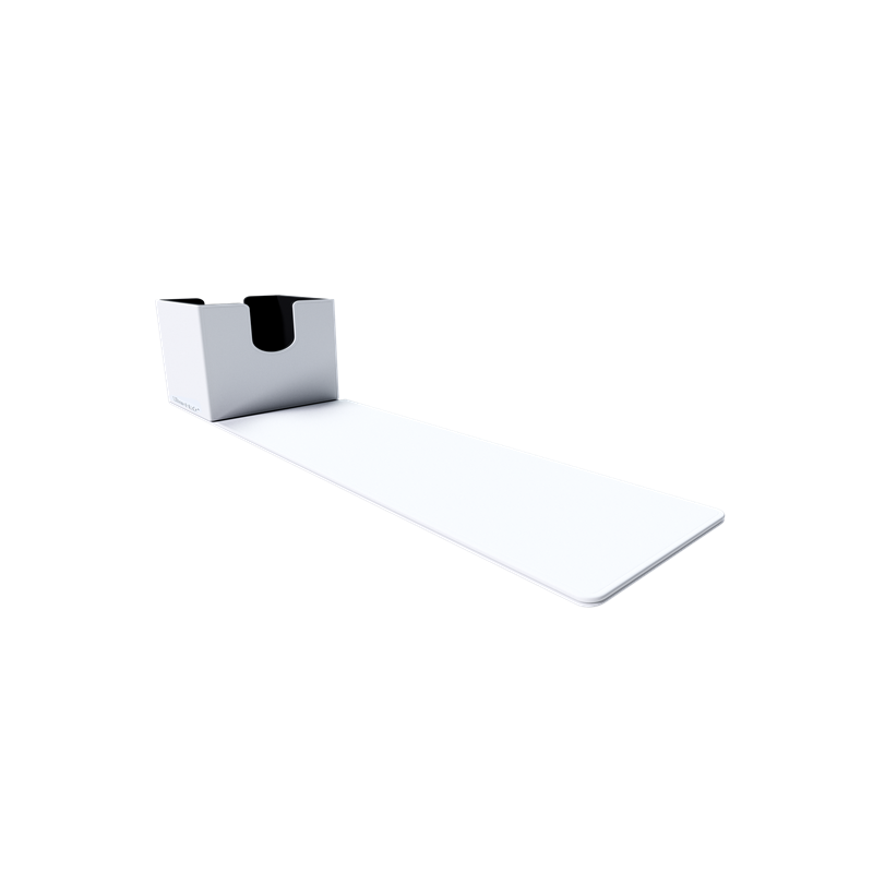 - Le couvercle se déplie pour révéler deux encoches pour le pouce pour un accès facile à votre deck.