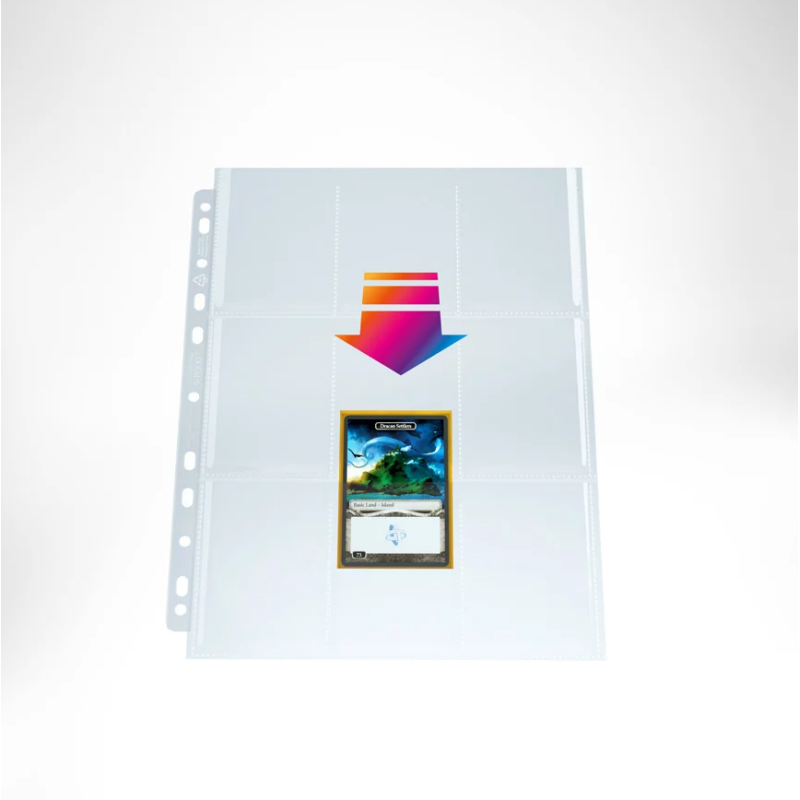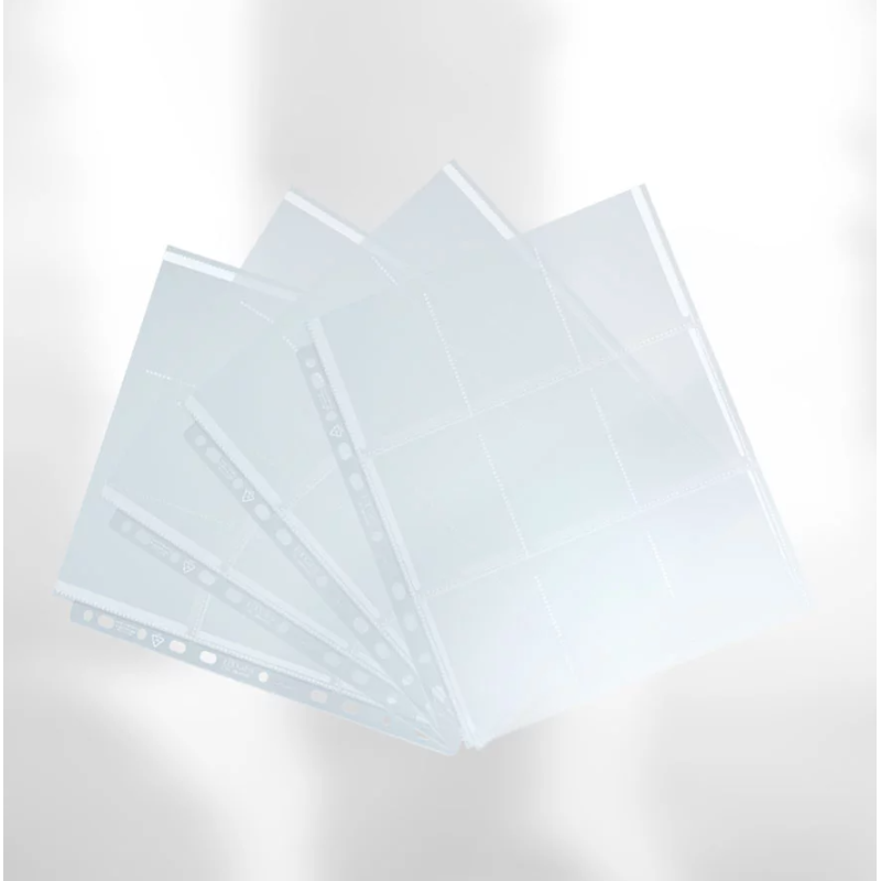 Pages à 9 pochettes de haute qualité pour cartes de format standard et japonais, en polypropylène extra clair.