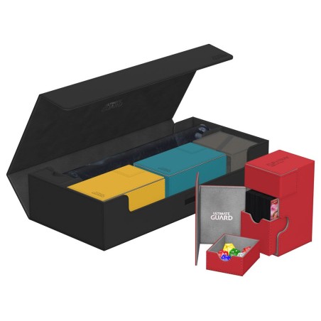 - Peut contenir jusqu'à 550 cartes de taille standard (en double-sleeve) ou 650 cartes (single-sleeve) en pochettes Ultimate Guard*