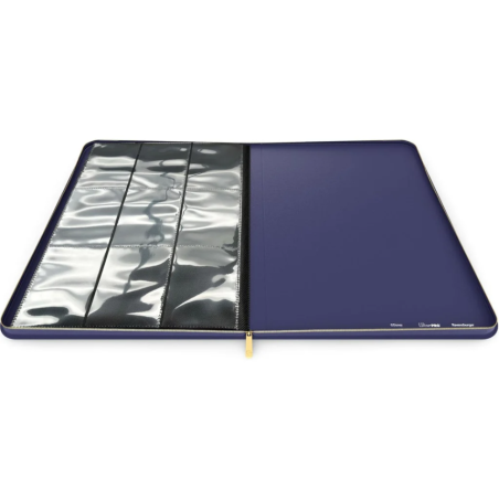 Le Portfolio premium de rangement de votre collection ornée de dorures, à la finition en simili-cuir avec une solide fermeture zippée, allie esthétisme et fonctionnalité, protégeant ainsi vos cartes de la manière la plus élégante qui soit.