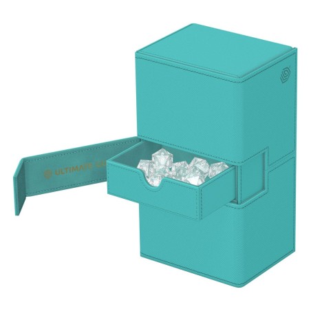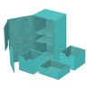 La boîte de deck Twin Flip'n'Tray dispose de deux compartiments accessibles indépendamment l'un de l'autre et dotés d'un intérieur en microfibre de haute qualité pour 100 (en double-sleeve) ou 120 (en simple-sleeve) cartes chacun. De plus, la boîte résistante Xenoskin dispose d'un compartiment amovible pour les accessoires et d'une fermeture magnétique puissante pour garder les cartes Magic : The Gathering, Pokémon, Lorcana, One Piece ou Yu-Gi-Oh ! en sécurité à l'intérieur.