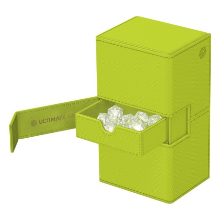 La boîte de deck Twin Flip'n'Tray dispose de deux compartiments accessibles indépendamment l'un de l'autre et dotés d'un intérieur en microfibre de haute qualité pour 100 (en double-sleeve) ou 120 (en simple-sleeve) cartes chacun. De plus, la boîte résistante Xenoskin dispose d'un compartiment amovible pour les accessoires et d'une fermeture magnétique puissante pour garder les cartes Magic : The Gathering, Pokémon, Lorcana, One Piece ou Yu-Gi-Oh ! en sécurité à l'intérieur.