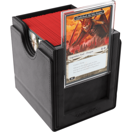 Le Sidekick PRO 100+ XL est une boîte de deck premium, spécialement conçue pour le format très populaire de Magic : The Gathering™ « Commander ». Il comprend un étui à cartes coulissant pour exposer le Commander ou la carte supérieure avec une protection UV supplémentaire. Grâce au placement innovant, le deck stocké peut être facilement identifié sans ouvrir la boîte. L' étui à cartes coulissant peut également être détaché et utilisé pendant le jeu. Le tiroir intégré contient des jetons supplémentaires et d'autres accessoires.