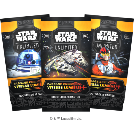 Chaque booster de Star Wars Unlimited - Passage en Vitesse Lumière contient 16 cartes aléatoires, réparties comme suit :