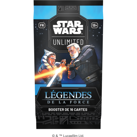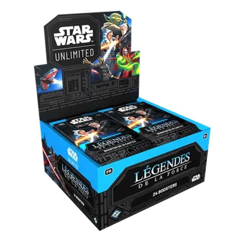 Boîte de 24 boosters Star Wars Unlimited : Légendes de La Force, de 16 cartes aléatoires en version française.
