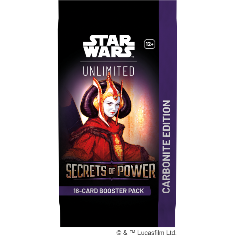 Booster Carbonite Star Wars Unlimited : Secret Of Power, de 16 cartes aléatoires en version anglaise.