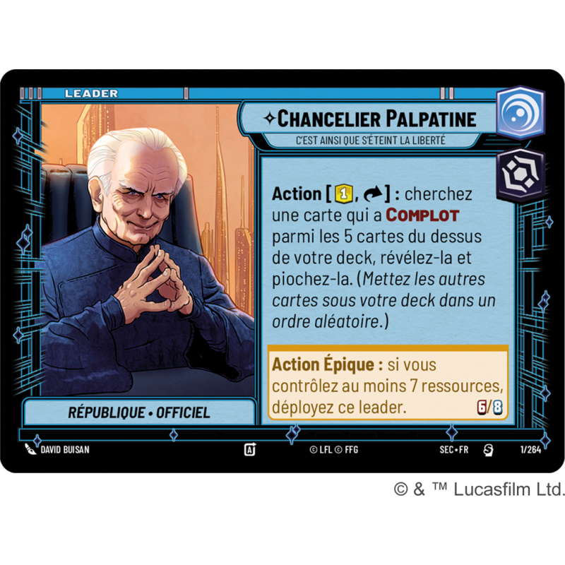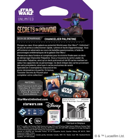 En jouant ce deck du Chancelier Suprême Palpatine, complotez et façonnez votre stratégie dans l'ombre jusqu'à la victoire finale. Ce deck complet préconstruit de 50 cartes (dont certaines des sets précédents) vous permet de vous lancer immédiatement et de vous amuser.