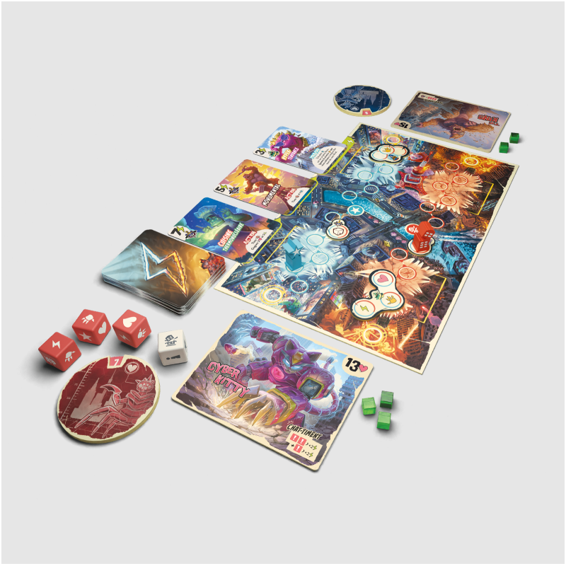 King of Tokyo: Duel brille par ses illustrations dynamiques et son matériel de qualité. Les fiches de monstres, les dés et les cartes sont tous superbement illustrés, que vous soyez un fan de longue date de King of Tokyo ou un nouveau venu dans cet univers, vous serez immédiatement attiré par la qualité visuelle de cette édition.