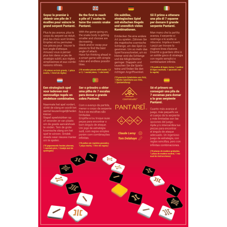 Pour gagner la partie, soyez le premier à créer une pile de 7 en utilisant aussi bien vos écailles que celles de votre adversaire. Plus les piles augmentent en taille, plus les chemins à emprunter deviennent rares. Très simple, très rapide… et très très piégeux…