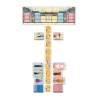 - 9 tuiles de podium : 5 tuiles “Jouez une carte”, 1 tuile “Piochez des cartes”, 1 tuile “Créateur”, 1 tuile “Revenu” et 1 tuile “Prestige”