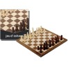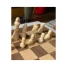 Jeu d'échec en bois marqueté avec pions en bois taille 3. Echiquier de 29 x 29 cm. Jeu d'échec complet comprenant plateau de jeux + 32 pièces d'échec. Ensemble tout en bois.