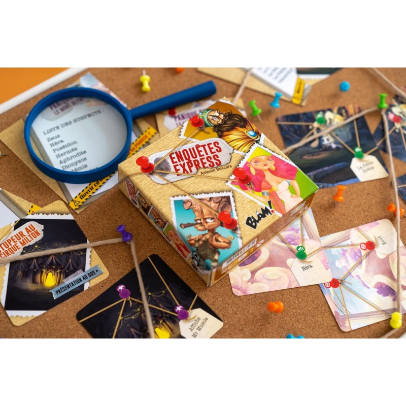 Enquêtes Express est un jeu d'investigation coopératif à la fois accessible, rapide et fun ! Lors d'une enquête, chaque joueur n’est autorisé à consulter qu’une partie des indices. C’est donc uniquement en partageant et en recoupant toutes leurs infos que les joueurs peuvent ensemble démêler l’intrigue.