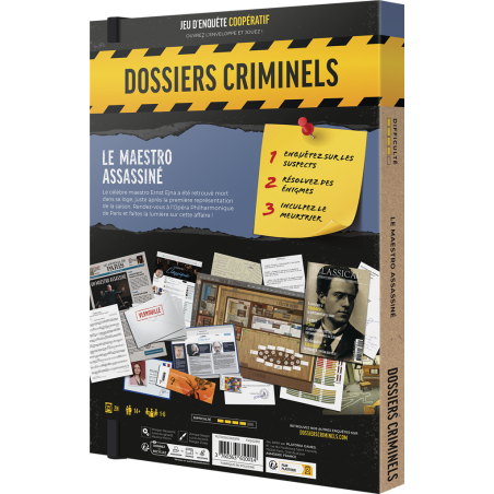 Dans Le Maestro Assassiné, le célèbre chef d’orchestre Ernst Ejna est retrouvé mort dans sa loge. Rétablissez la chronologie des évènements, étudiez les différents témoignages et démasquez le meurtrier.