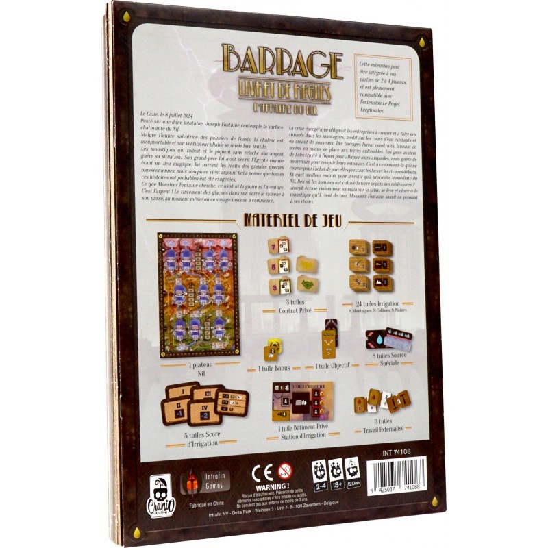 L'Affaire du Nil est une extension pour Barrage et vous avez besoin du jeu de base pour y joueur. Cette extension inclut un plateau spécifique dans la région du Nil et offrant une nouvelle mécanique.