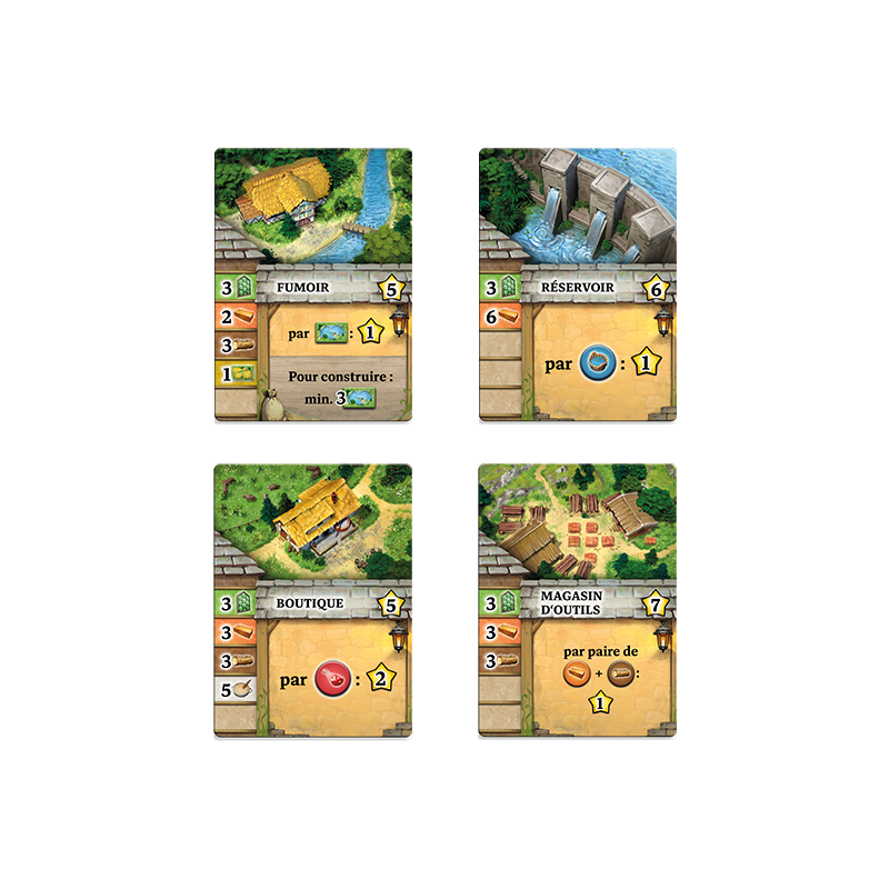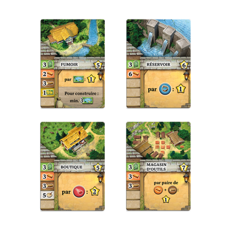 Vos deux cadrans de production vous aident à suivre l’état de vos stocks. La variété des bâtiments et de leurs effets ouvrent de nombreuses possibilités stratégiques pour atteindre la victoire.