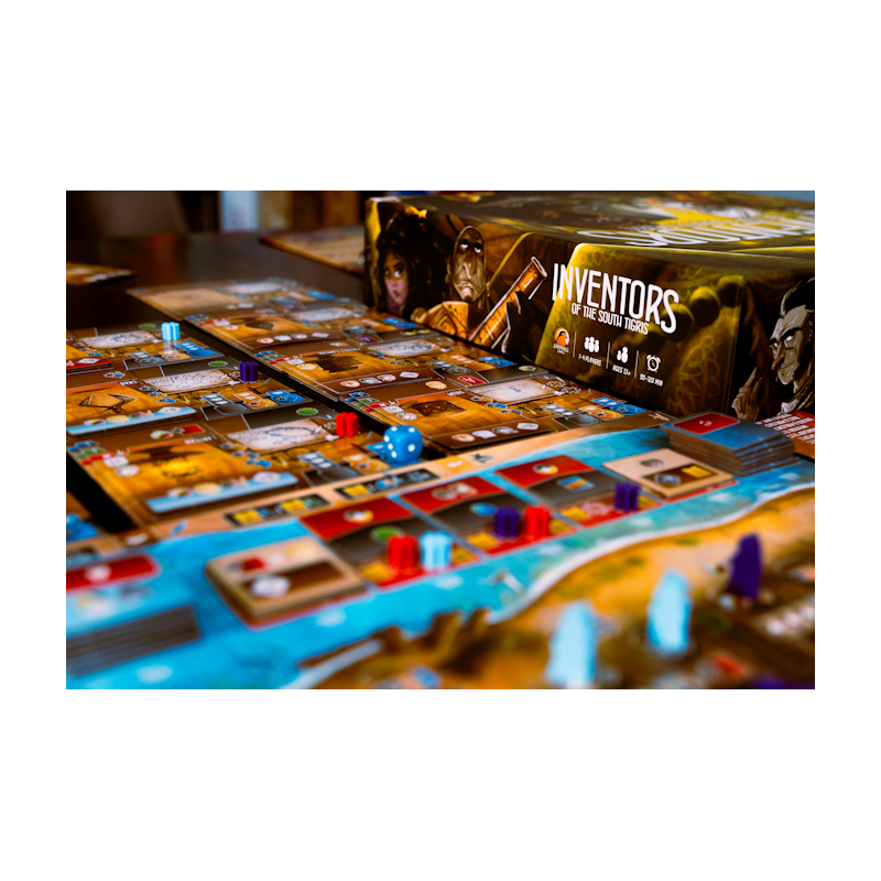 Inventeurs du Tigre du Sud se déroule à l’apogée du califat abbasside, vers 850 après JC. Au cours des dernières décennies, Bagdad est devenue le foyer de milliers de mathématiciens, astronomes, chimistes et médecins. En tant qu'innovateurs inspirés, les joueurs sont impatients de développer des engins et inventions pour impressionner leurs pairs. Vos ingénieux appareils orneront ils la Maison de la Sagesse, ou sont-ils destinés à la poussière et à l'oubli ?