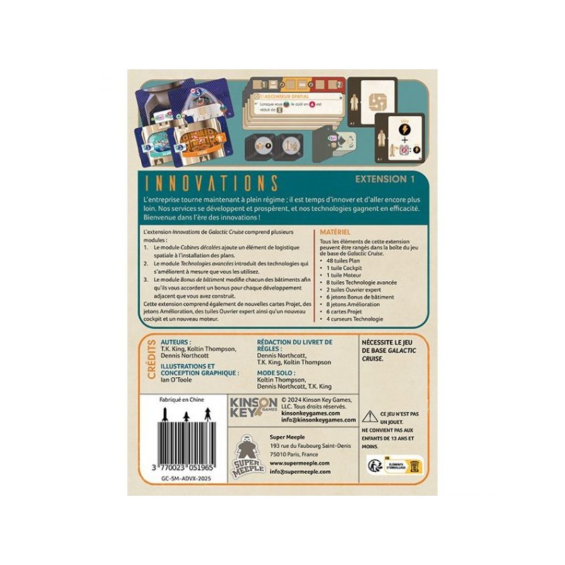 L’extension Innovations pour Galactic Cruise comprend plusieurs modules, qui peuvent être joués individuellement ou en combinaison les uns avec les autres.