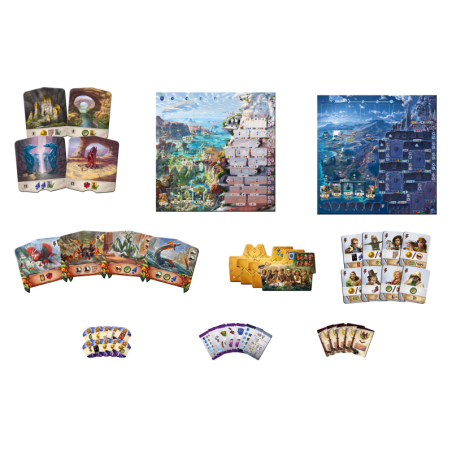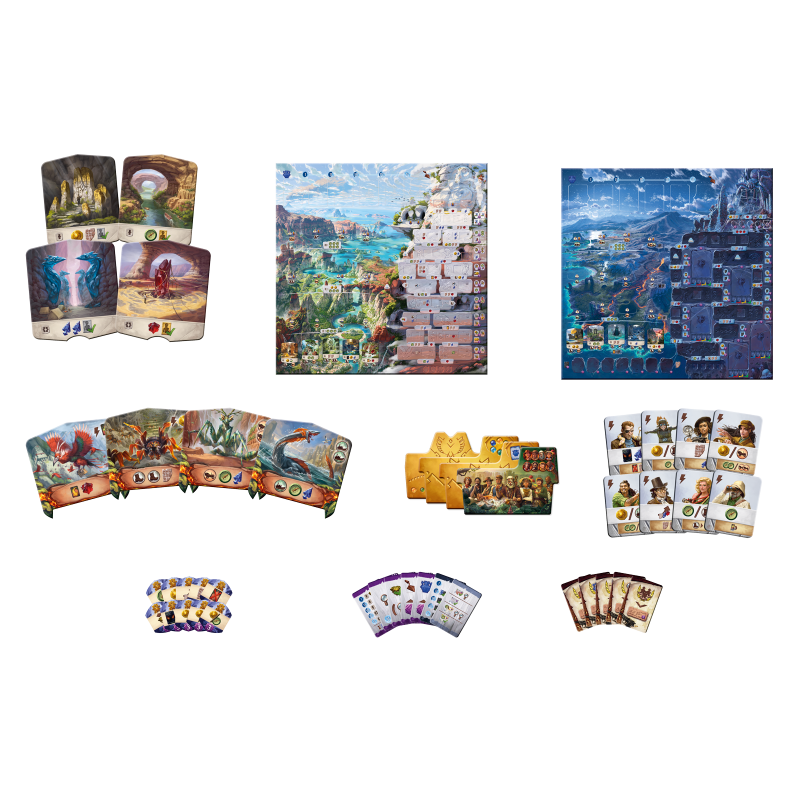- 1 nouveau plateau recto-verso, chacun avec sa propre piste de recherche unique et de nouveaux éléments (tablettes sombres, nouvelles tuiles de temple, etc.)