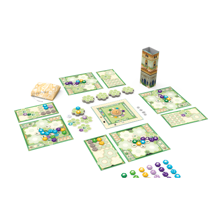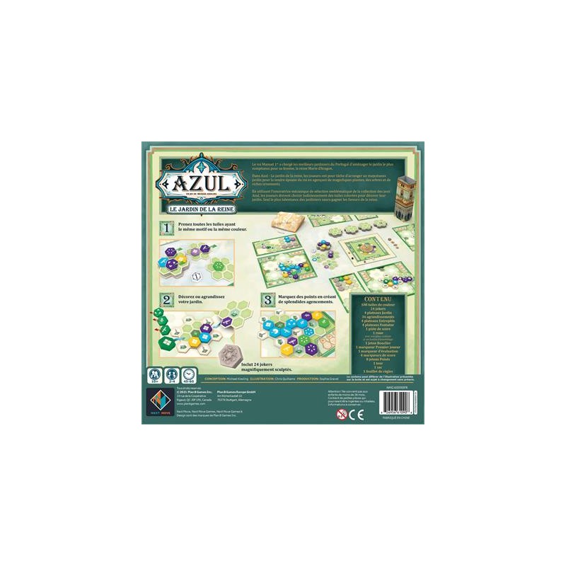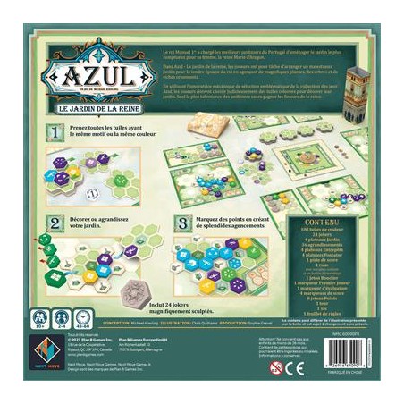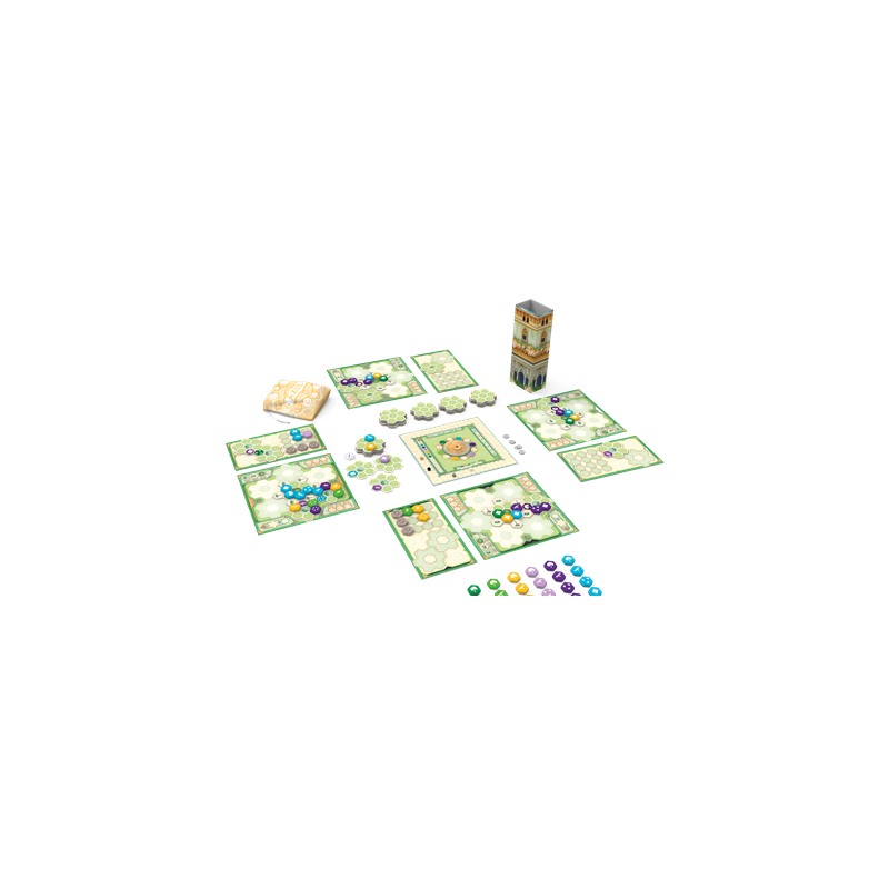 En utilisant l’innovatrice mécanique de sélection emblématique de la collection des jeux Azul, les joueurs doivent choisir judicieusement des tuiles colorées pour décorer leur jardin.